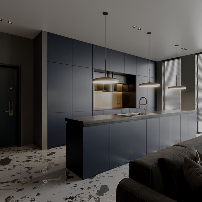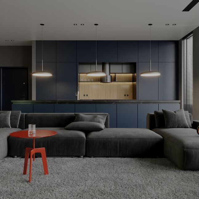 The U599 Indigo Blue is an almost black blue and it is therefore part of the on-trend 'Nearly Black' tones. On furniture, it provides a very elegant contrast to dark brown woodgrains, such as walnut, and is often used in living room furniture. A cooler look is created with materials such as concrete or steel. These optical properties are given the perfect haptic finish with the PM PerfectSense Premium Matt lacquer surface. The use of an MDF core material or laminate as the base material creates a particularly matt quality and a unique surface calm. The anti-fingerprint property opens up additional application possibilities for this matt uni surface, even on surfaces exposed to heavier stress.