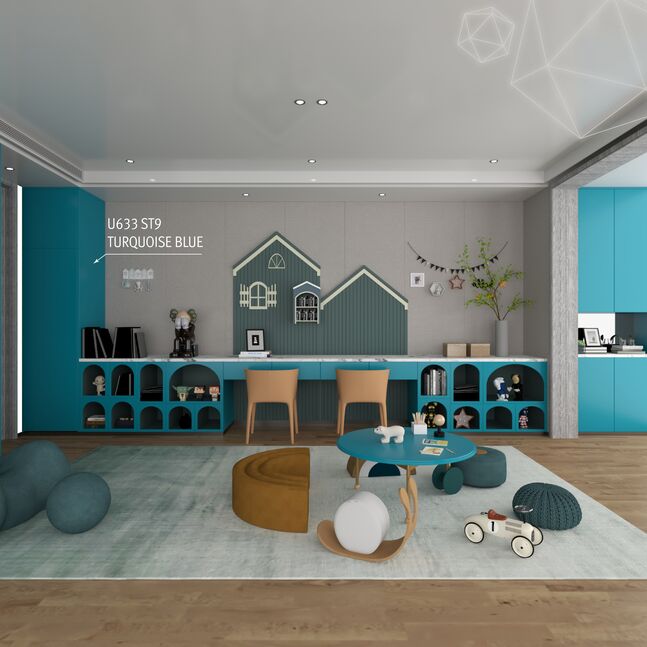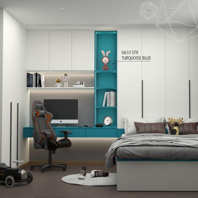 The U633 Turquoise Blue is a strong and also 'digital' accent colour between green and blue, which is particularly striking together with black and white. Combinations with light colours or grey tones work well. Such dominant colours increasingly form breaks in combinations with more neutral or muted colour ranges. The ST9 Smoothtouch Matt surface texture gives all uni colours a modern matt look and feel.
